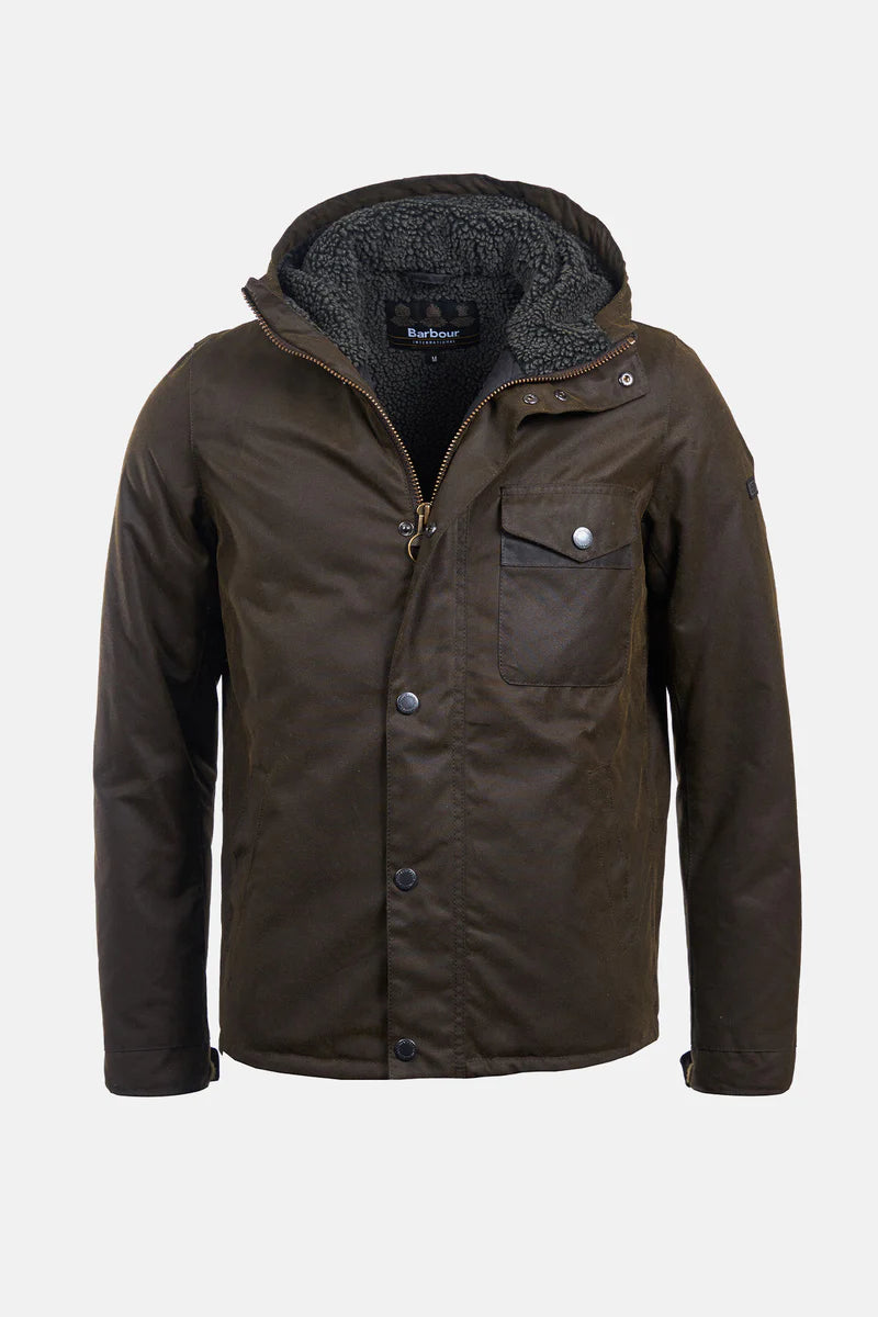 La Barbour Kevlar Waxed Cotton Jacket è una giacca di ispirazione motociclistica realizzata con un esterno in cotone cerato molto resistente, una confortevole fodera trapuntata e un cappuccio fisso foderato in pile. Due tasche inferiori sono abbinate a un'ulteriore tasca applicata sul petto per custodire gli oggetti essenziali. Il label di Barbour rifinisce il capo.