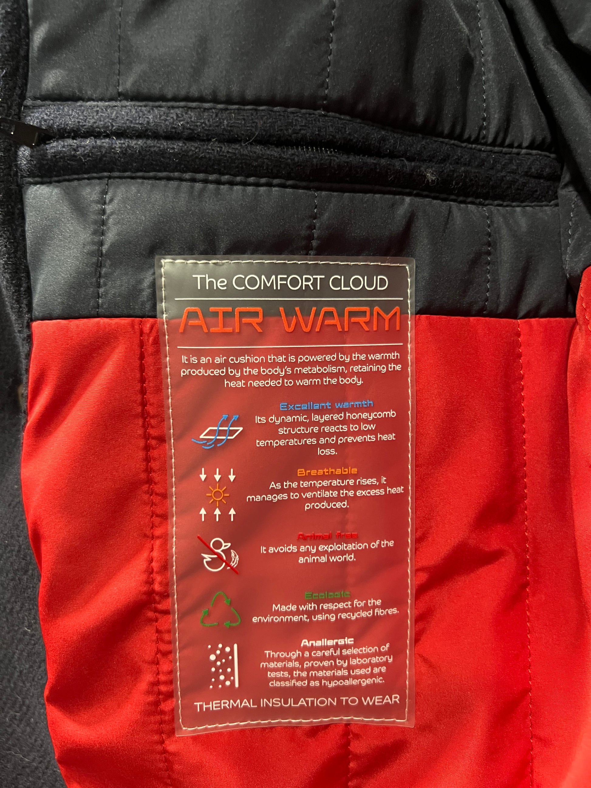 Dotato di sistema Air Warm* assicura il mantenimento del calore corporeo anche nei grandi freddi.